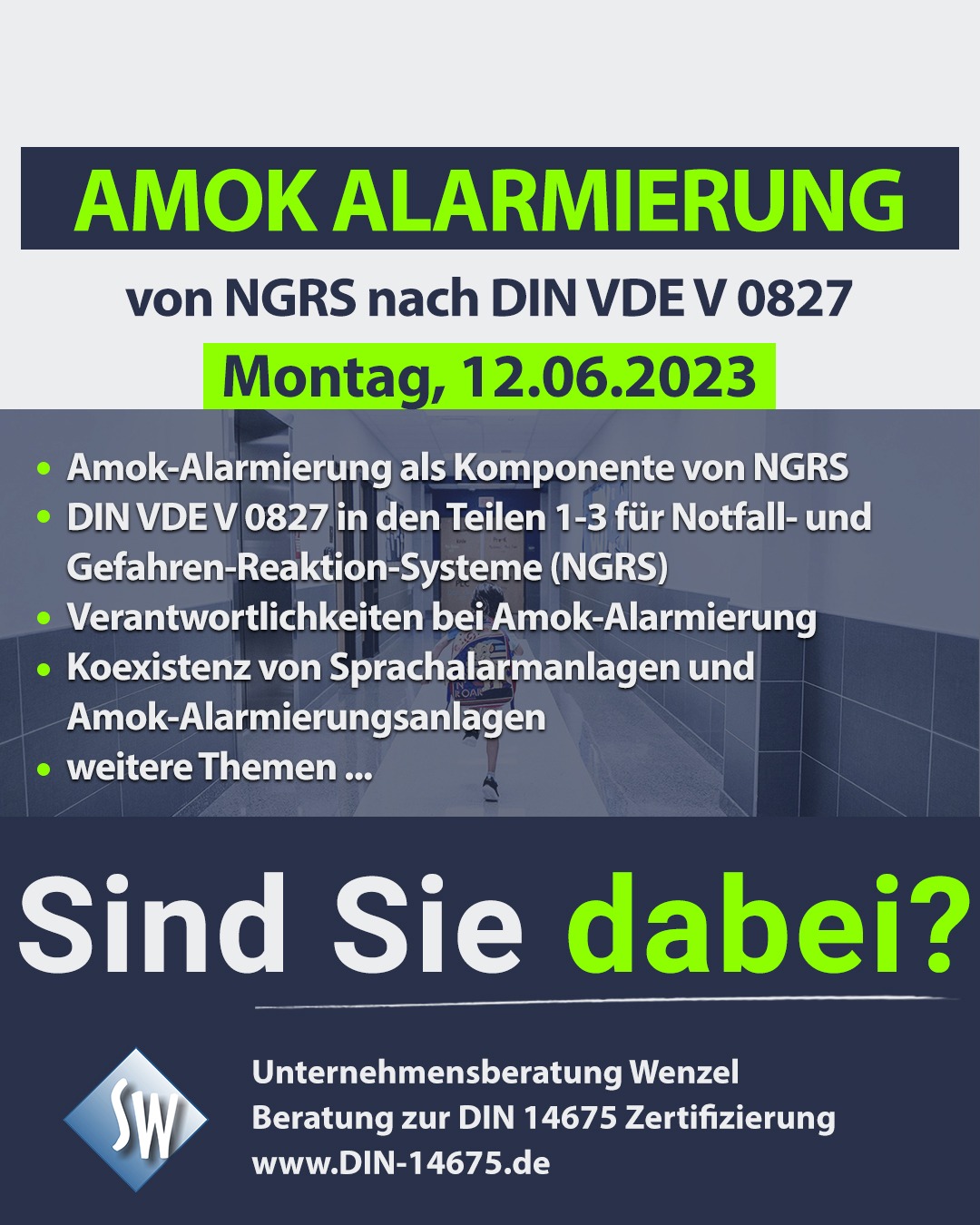 In unserer neuen Online-Schulung „AMOK-ALARMIERUNG mit Notfall- und Gefahren-Reaktions-Systeme nach DIN VDE V 0827“ gehen wir näher auf das Thema ein.