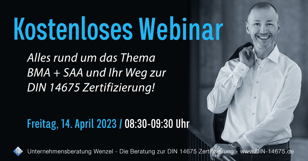 In diesem kostenlosen Webinar erklärt Ihnen unser Geschäftsführer Dipl.-Ing. Stephan Wenzel, welcher Weg zur DIN 14675 der für Sie schnellste und leichteste ist.