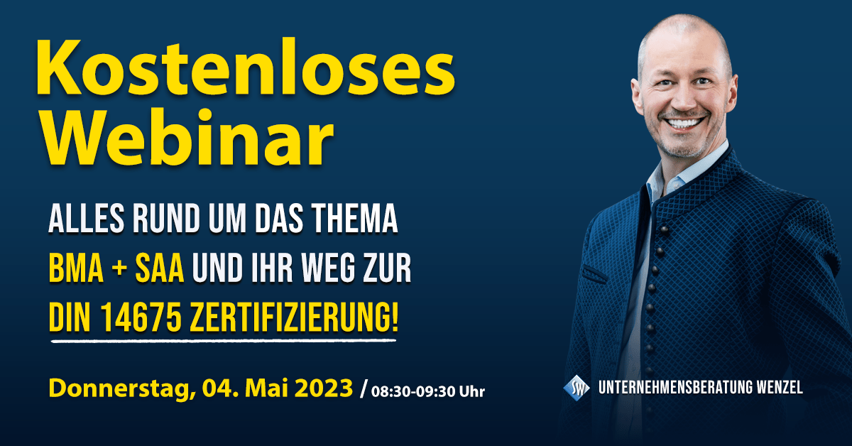 In unserem kostenlosen Webinar „Alles rund um das Thema BMA + SAA und Ihr Weg zur DIN 14675 Zertifizierung!“ Innerhalb lediglich 60 Minuten werden Sie kompakt informiert über die DIN 14675 und Ihrem Weg zur erfolgreichen Zertifizierung! Die einzelnen Schritte dorthin werden Ihnen erläutert und im Detail erklärt – egal ob Sie ein 1-Mann-Betrieb sind, oder ob Sie mehrere hunderte Mitarbeiter beschäftigen.